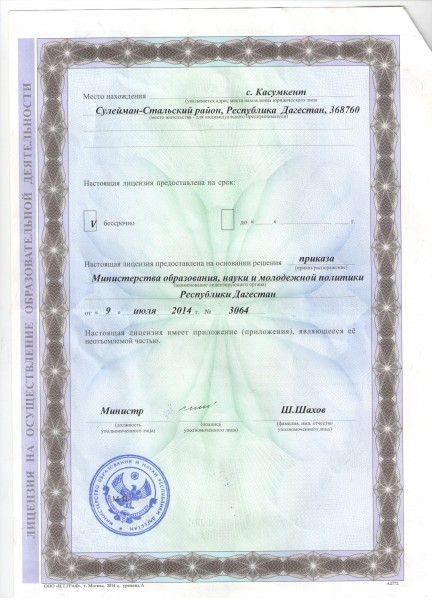 Адрес местонахождения образовательной организации* Республика Дагестан, Сулейман-Стальский район, с.Касумкент