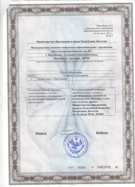 Полное наименование образовательной организации* Муниципальное казенное дошкольное образовательное учреждение "Касумкентский детский сад №1"